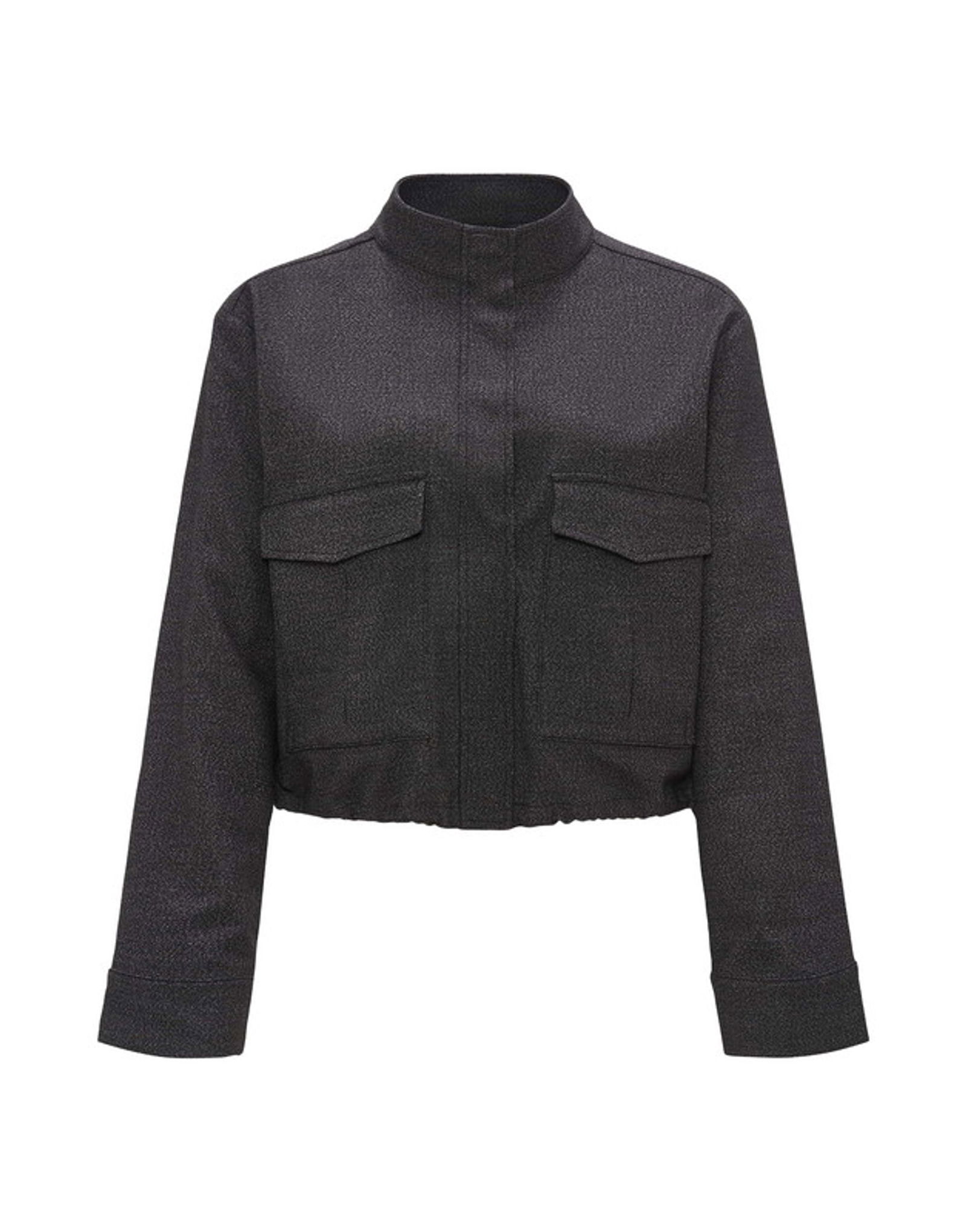 Das kurze Jäckchen "Ciloka" von Cinque ist die ideale Wahl für alle, die einen modernen Look mit einer lässigen Note suchen. Diese feminine Alternative zum klassischen Blazer verleiht jedem Outfit eine Extraportion Coolness. Der Regular-Fit-Schnitt und die verkürzte Länge sorgen für eine schlanke Silhouette und eine besonders trendbewusste Ausstrahlung. Das Modell besticht durch einen spitzen Kentkragen, eine strukturierte Schulterpasse und praktische seitliche Eingrifftaschen, die das Design sowohl funktional als auch stylisch machen. Die 2-Reiher-Knopfleiste und der Stehkragen verleihen dem Jäckchen eine elegante und gleichzeitig moderne Note. Mit einer Länge von 52 cm ist das Jäckchen perfekt kombinierbar – sei es zu einer eleganten Hose für den Büro-Look oder zu lässigen Outfits in der Freizeit. Das Material aus 64 % Baumwolle, 33 % Polyester und 3 % Elasthan sorgt für angenehmen Tragekomfort und eine leichte Dehnbarkeit, die den ganzen Tag über für Bewegungsfreiheit sorgt. Setzen Sie auf das "Ciloka" Jäckchen von Cinque, um Ihrem Look eine moderne, feminine Note zu verleihen. Ein unverzichtbares Piece für jede stilbewusste Frau!