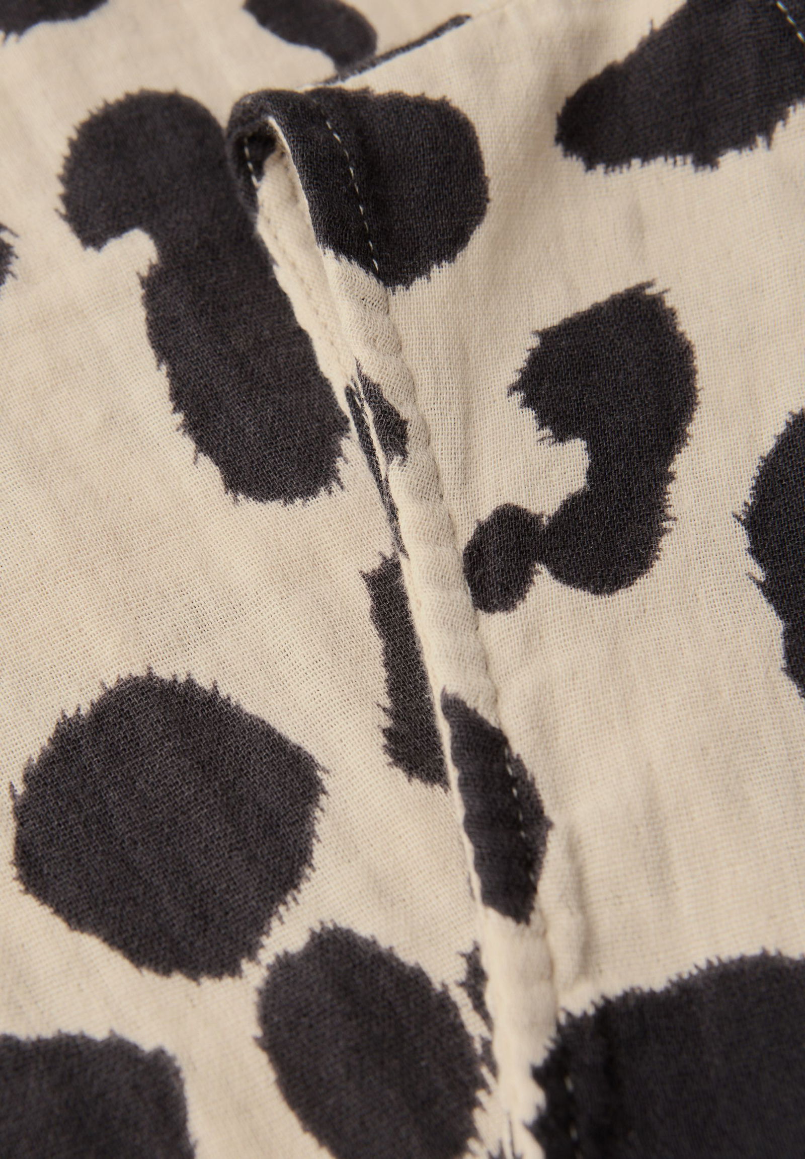 lockere Passform, gerader Schnitt, normale Länge, überschnittene Schulter mit Kurzarm, Funnel Neck, Rückenlänge ca. 56 cm bei Größe 36, Model Größe 177 cm trägt Größe 36, Webware, Jersey im Rücken, weicher Griff, fließender Fall, abstrakter Print
