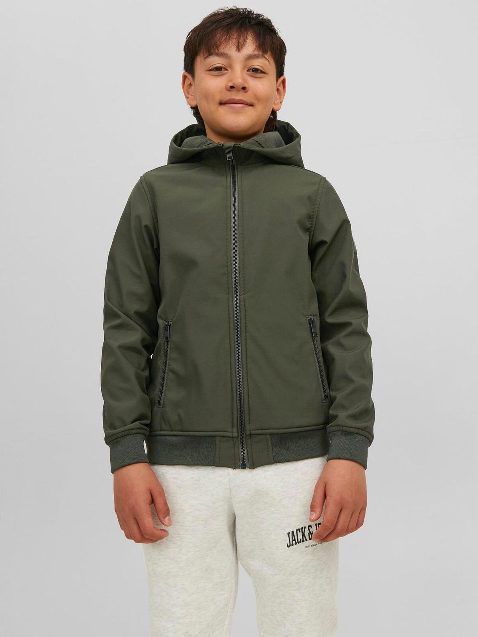 - Produkttyp : Softshell Jacke - Funktionsweise : Wasserabweisend - Hals : Kapuze - Ärmel : Langarm - Manschetten : Gerippte Ärmelbündchen - Länge/Größe : Kurz - Futter : Ungefüttert, Säume eingefasst - Körperform : Junior