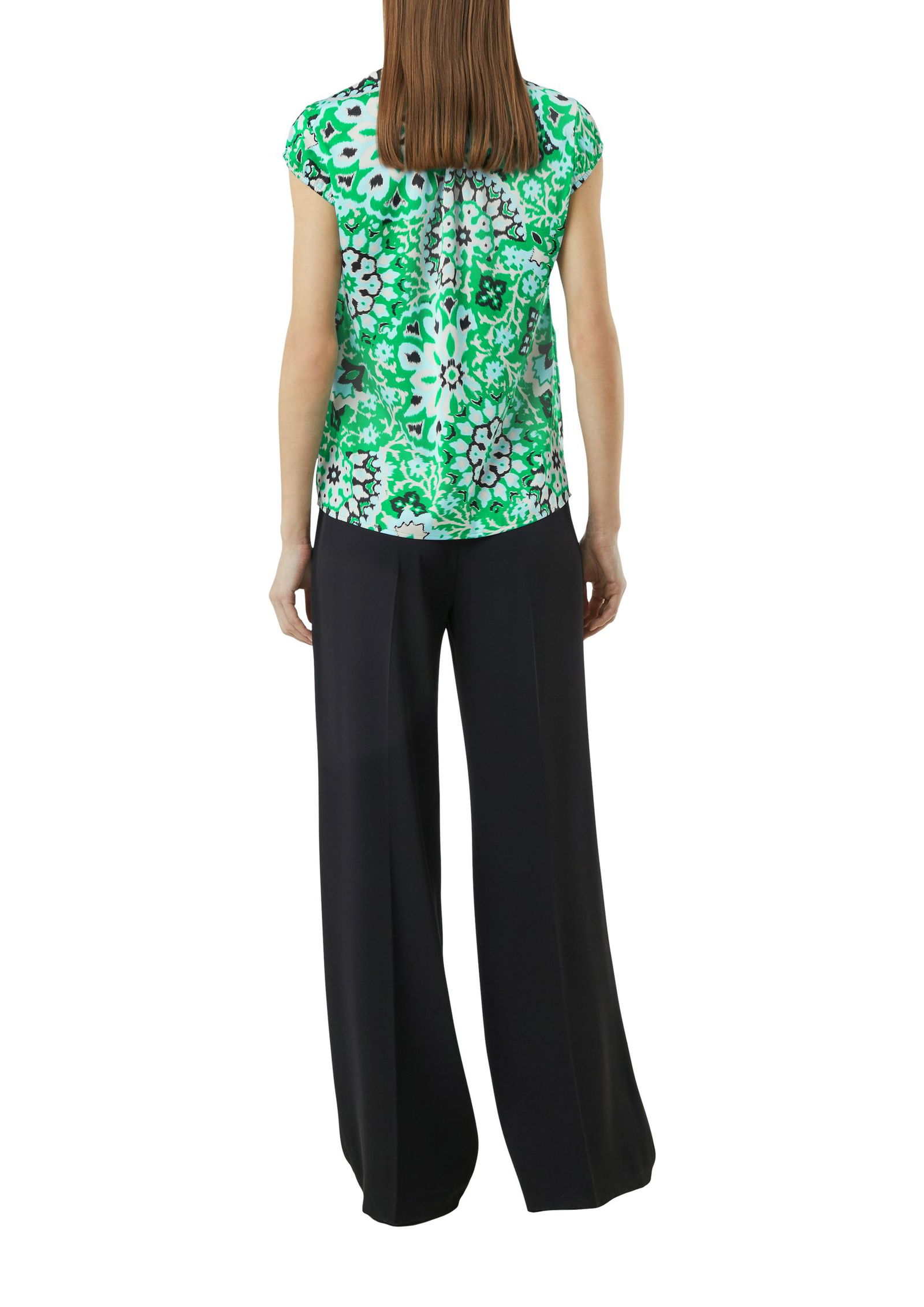 Raffinierte Blüte: Diese Satinbluse mit All-Over Print und Raffung ist ein wahres Schmuckstück in Ihrem Kleiderschrank. Der fließende Stoff aus Polyester mit Elasthan-Anteil umschmeichelt Ihre Silhouette und sorgt für angenehmen Tragekomfort. Die Kurzarm-Variante eignet sich perfekt für warme Tage im Büro oder einen stilvollen Abend. Kombinieren Sie die Bluse mit einer taillierten Hose für einen eleganten Look oder mit Jeans für einen lässig-schicken Auftritt.