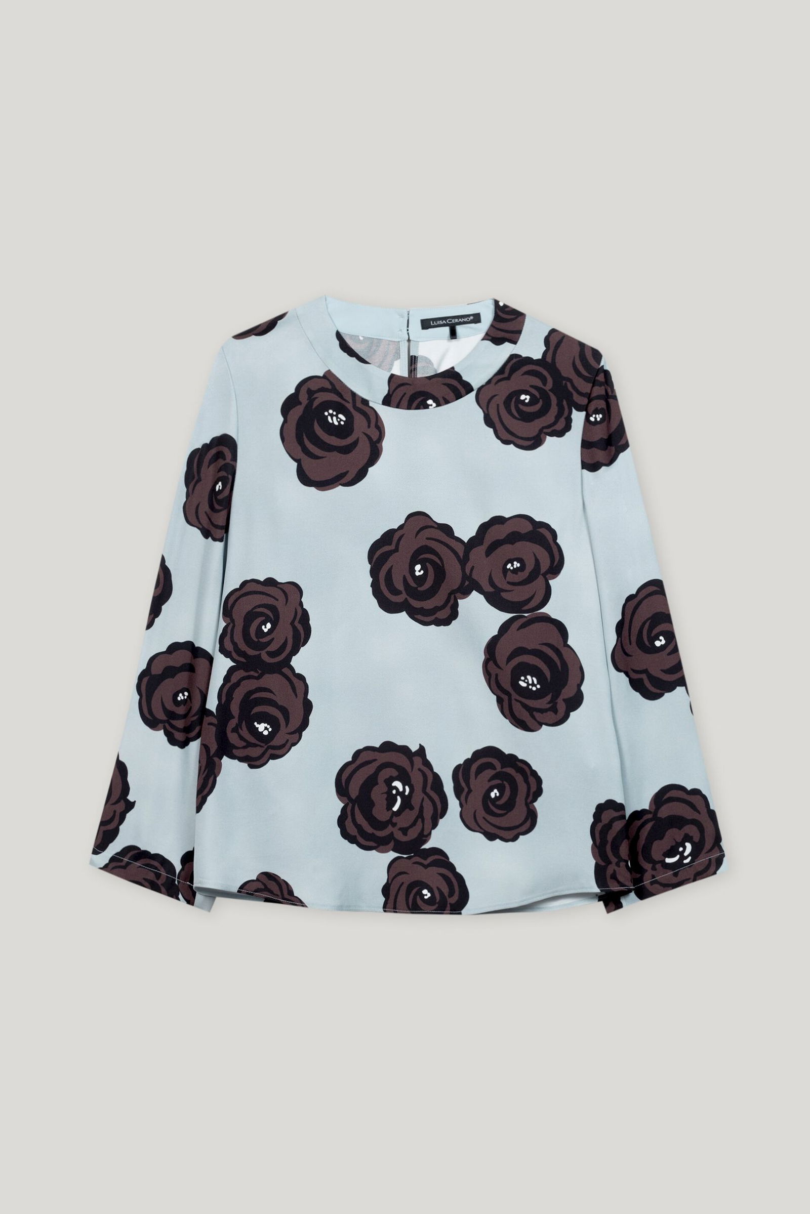 Leichte Bluse mit exklusivem, abstrahiertem Blumen-Dessin aus semitransparentem Viskose-Crêpe. Der angekrauste Halsausschnitt und die ¾-langen Ärmel runden das Design ab. Unser Model ist 178 cm groß und trägt Größe 36. Obermaterial: 100% Viskose Knöpfe: Perlmutt Enthält nichttextile Teile tierischen Ursprungs. Handwäsche