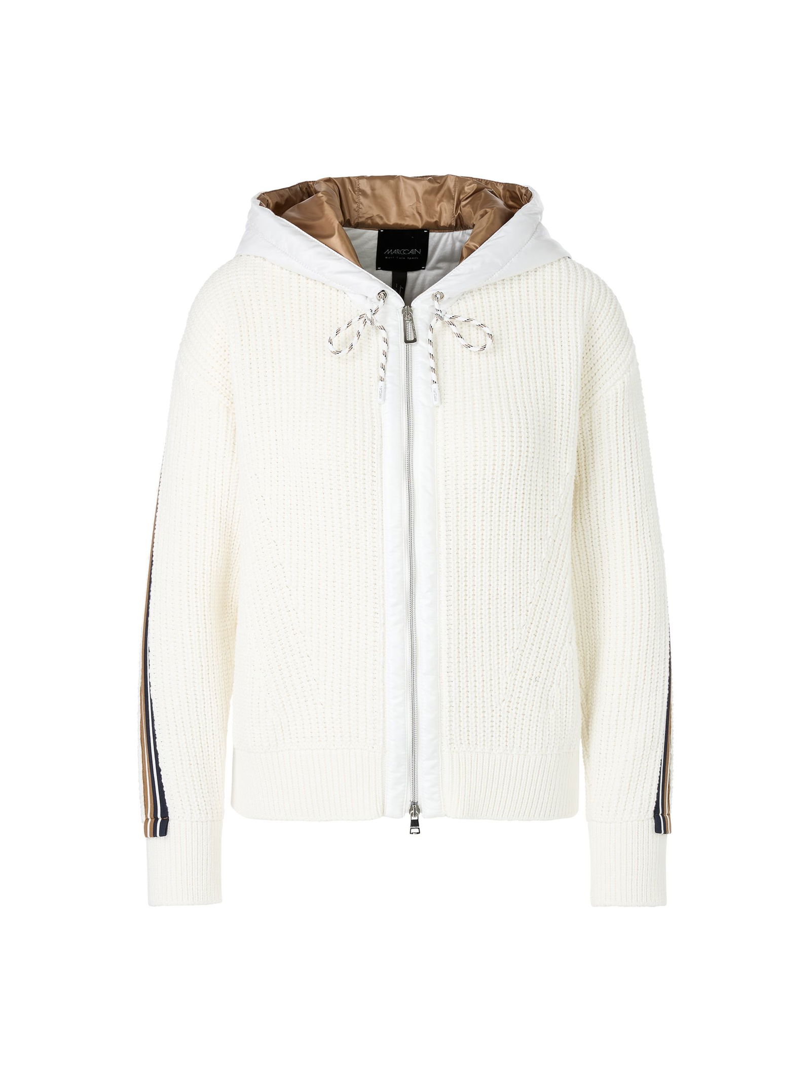Marc Cain Cardigan mit Kapuze – Nachhaltig, stilvoll und vielseitig Der Marc Cain Cardigan aus der "Rethink Together"-Kollektion ist der Inbegriff von nachhaltiger Mode, die sich perfekt in deinen Alltag integrieren lässt. Mit seinem eleganten und zugleich legeren Design vereint dieser Cardigan modisches Flair und verantwortungsbewusste Produktion. Die Kollektion steht für umweltfreundliche Materialien und ressourcenschonende Herstellungsprozesse – für eine Mode, die gut aussieht und sich gut anfühlt. Gefertigt aus hochwertigen 90 % Baumwolle und 10 % Polyester bietet dieser Cardigan nicht nur eine angenehme Haptik, sondern auch maximalen Komfort und eine lange Lebensdauer. Der Cardigan überzeugt mit seiner weichen Textur und dem natürlichen Tragegefühl, das den ganzen Tag über anhält. Die sportliche Kapuze sorgt für eine dynamische Note, während das zeitlose Design den Cardigan zu einem vielseitigen Allrounder für verschiedene Anlässe macht. Die saubere Verarbeitung und edle Details wie dezente Logoelemente und eine harmonische Farbgebung betonen die hohe Qualität dieses Kleidungsstücks. Ob lässig über einem T-Shirt, als Überwurf für einen eleganten Look oder als stilvolles Highlight in deiner Freizeitgarderobe – dieser Cardigan ist ein echter Stil-Begleiter. Produkt-Highlights: Nachhaltig produziert in der "Rethink Together"-Kollektion 90 % Baumwolle, sorgt für ein weiches Tragegefühl Sportliche Kapuze für eine lässige Note Edle Details und dezente Logoelemente Weiß als vielseitige, harmonische Farbwahl Hohe Langlebigkeit durch sorgfältige Verarbeitung Mit diesem nachhaltigen Cardigan triffst du eine stilvolle Wahl, die nicht nur deinem Look, sondern auch der Umwelt zugutekommt. Ein wahres Must-Have für modebewusste und umweltbewusste Frauen!