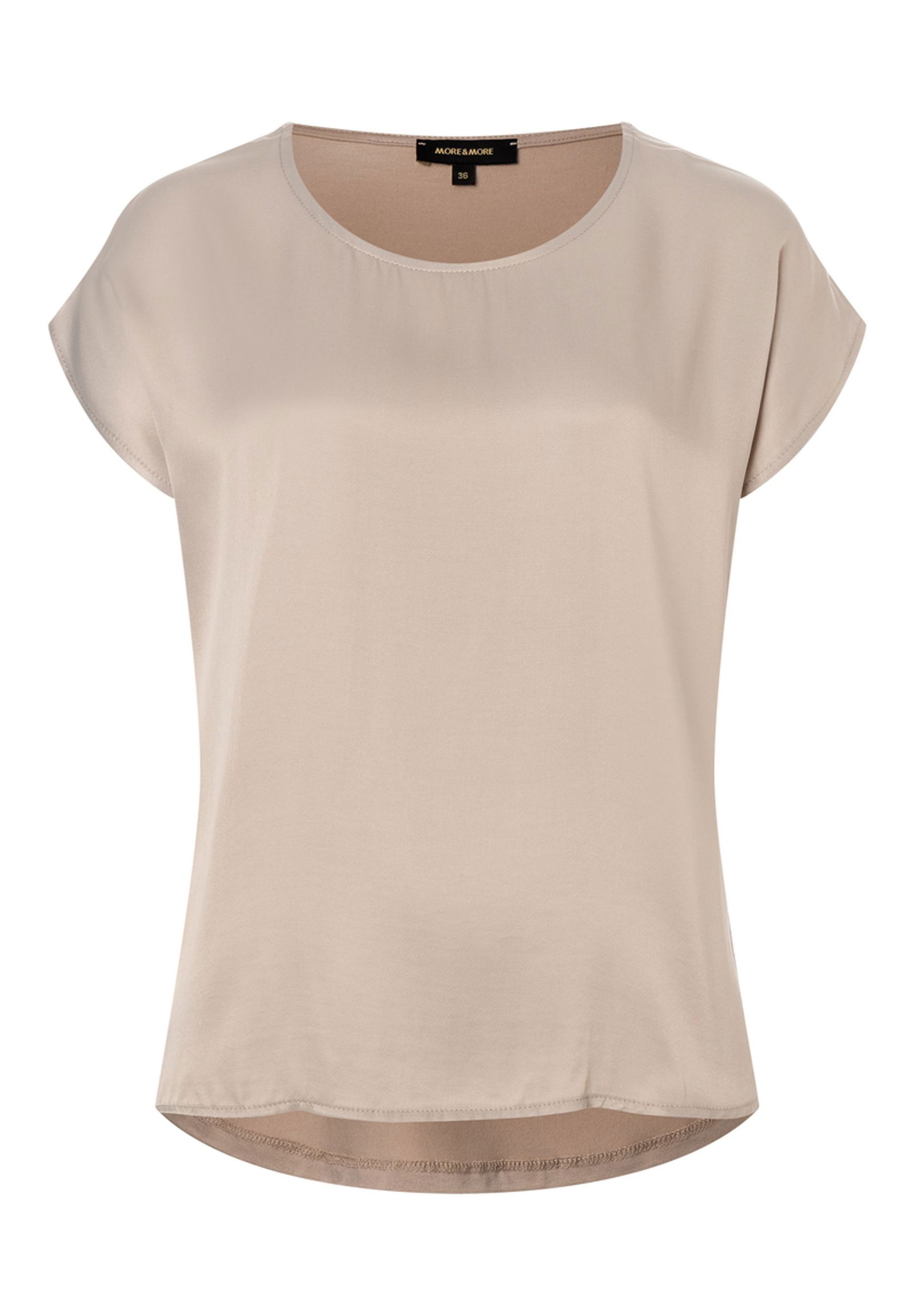 Das More & More Blusenshirt vereint stilvolle Eleganz mit lässigem Komfort und ist die ideale Wahl für modebewusste Frauen, die auf Vielseitigkeit setzen. Die edel-glänzende Satinfront verleiht dem Shirt eine raffinierte Note und macht es zu einem echten Hingucker, während das moderne Print-Design für eine frische, trendbewusste Optik sorgt. Dank der gelungenen Kombination aus Bluse und T-Shirt ist das Oberteil sowohl für den Alltag als auch für besondere Anlässe perfekt geeignet. Die weiche, fließende Qualität schmiegt sich angenehm an den Körper an und sorgt für ein komfortables Tragegefühl. Ob elegant mit Blazer und Stoffhose im Büro, lässig mit Jeans oder feminin mit Rock – dieses Blusenshirt ist ein echtes Kombinationstalent. Durch die hochwertige Verarbeitung bleibt es auch nach häufigem Tragen in Form und überzeugt mit einem stilvollen, zeitlosen Look, der in keiner Garderobe fehlen sollte.