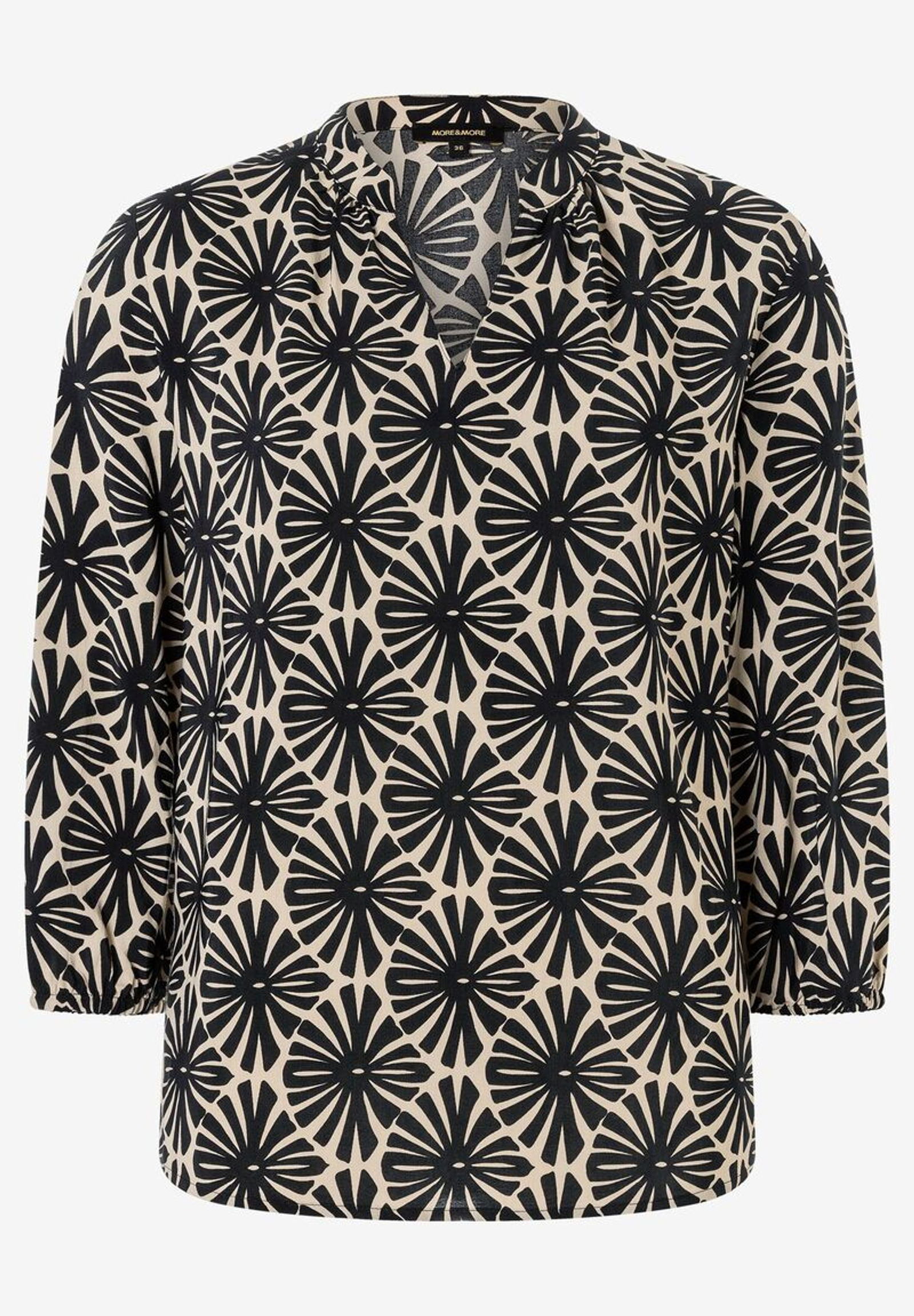 Die More & More Viskosebluse mit grafischem Allover-Print in Schwarz und Sand ist ein stilvolles Must-have für jede Garderobe. Ihr fließendes Material sorgt für ein angenehm leichtes Tragegefühl und eine elegante Silhouette, die sich perfekt an den Körper anschmiegt. Der moderne grafische Print verleiht der Bluse eine trendbewusste und zugleich zeitlose Note, die sich vielseitig kombinieren lässt. Ob zur klassischen Businesshose für einen eleganten Büro-Look, zur sportiven Chino für eine entspannte Freizeit-Variante oder zur lässigen Jeans für einen coolen Casual-Style – diese Bluse ist ein echtes Kombinationstalent. Die hochwertige Viskosequalität verspricht zudem ein besonders angenehmes Tragegefühl und sorgt dafür, dass die Bluse auch nach langem Tragen in Form bleibt. Dank ihrer mühelosen Eleganz ist sie sowohl für den Alltag als auch für besondere Anlässe eine stilvolle Wahl.