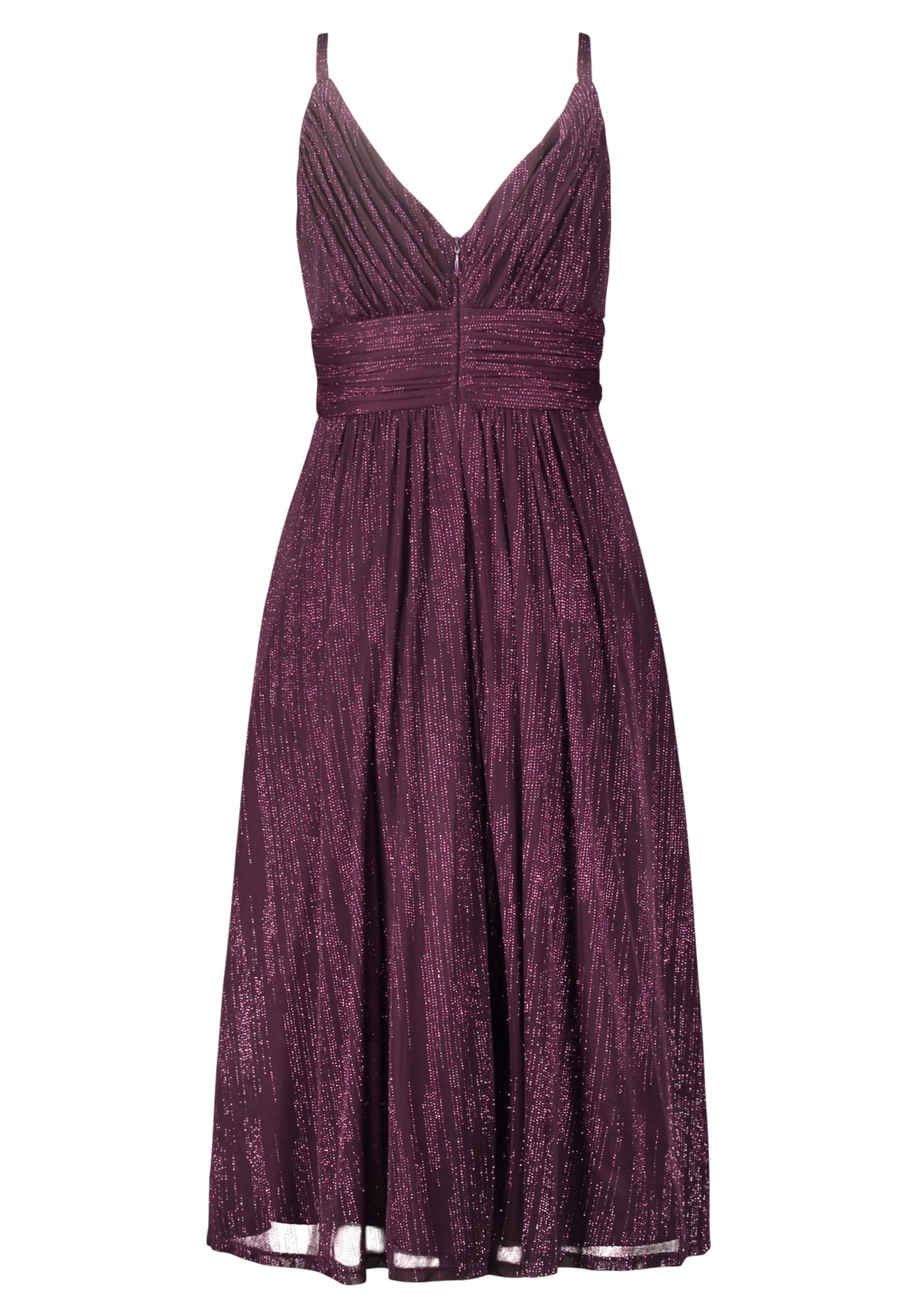 * Passform: Schwingend * Gesamtlänge: 96 cm * Länge ab Taille: 54 cm * Ärmel: Ärmellos * Ausschnittform: Rundhals-Ausschnitt * Längeninfo: Knielang * Materialart: Chiffon, Materialmix * Verschluss: Reißverschluss, Haken und Ösen * Muster: Uni * Futter: 100% Polyester * Besatz: 90% Polyamid, 10% Elasthan